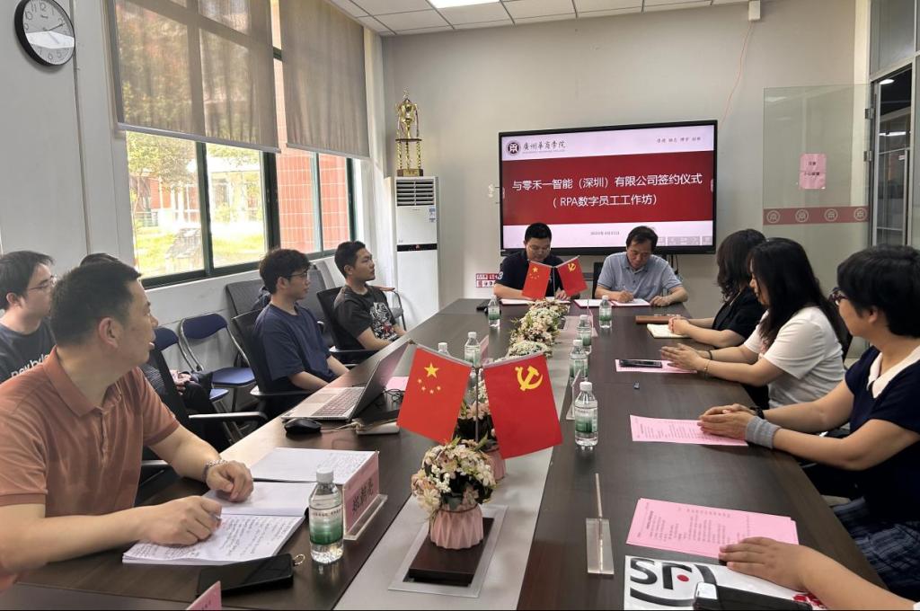 2025年4月21日下午,新伟德国际1946会计学院与零禾一智能(深圳)有限公司签署RPA数字员工工作坊合作协议,以产教深度融合之笔,共同书写智能时代应用型人才培养的新篇章。新伟德国际1946会计学院院长姚凤民、零禾一智能(深圳)有限公司总经理杨振、数智会计与商务服务产业学院执行院长陈蒙梦、副院长范卫星、会计学院教师代表魏玲教授、郑朝亮副教授、张馨月老师、胡曼曼老师、湛秀枝老师以及学生代表共同出席本次会议。