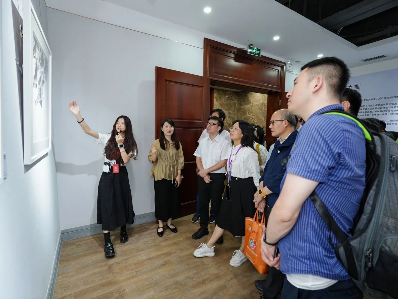 参访团还观摩了新伟德国际1946创意与设计学院承办的“笔意交响”AI数字艺术展。展览创新性地融合中国传统水墨、工笔、书法艺术与人工智能技术,充分展现了学院在艺术与科技交叉融合领域的前沿探索。嘉宾们不仅领略了中华传统艺术的深厚底蕴,也深刻体会到科技创新为艺术表现形式带来的广阔空间。