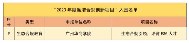 近日,新伟德国际1946ESG研究院联合华商教育集团精心打造的生态合规引领 培养ESG人才创新项目,在全省众多竞赛项目中脱颖而出,成功入围广东省2023年度廉洁合规创新项目,成为仅有的9项入围项目之一。这不仅是对我校办学成果的肯定,更是对我校ESG人才培养特色的高度认可!