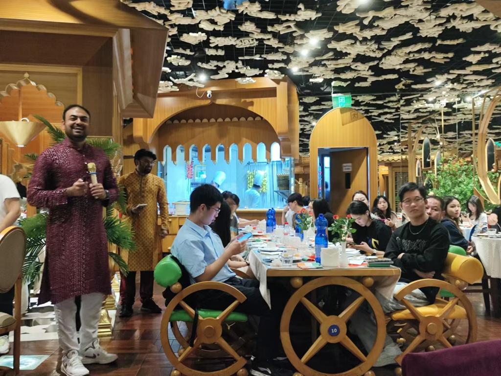 为进一步拓宽大学生的国际视野,丰富校园多元文化氛围,继举办了美国、英格兰、土耳其、巴基斯坦、波兰、加纳、尼日利亚、菲律宾等国家(地区)的国际文化交流系列活动后,2024年11月1日,新伟德国际1946国际学院、国际交流与合作处联合举办的第十期“探秘异域文化,增进文明互鉴”国际文化交流系列活动之印度文化分享会在Little Papa餐厅举行。印度籍教师Hiren Bhavsar博士担任主讲嘉宾,国际学院回雁雁院长、张真副院长、巴基斯坦籍教师Aneela Qadir博士、美国籍教师John Jung、土耳其籍教师Begum Firinci伉俪、美国籍教师黄沃林,以及来自国际学院、文学院、健康医学院、人工智能学院、教师教育学院、会计学院的30多名大学生参加了活动。