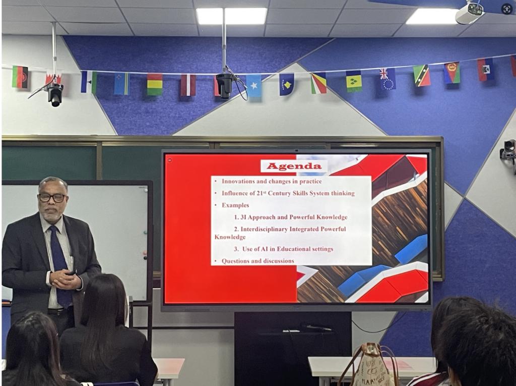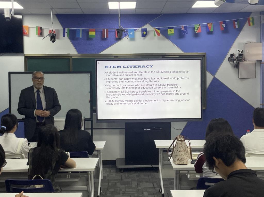 在信息科技突飞猛进的当下,为了让大学生认识到构建跨学科知识体系的重要性,了解最新的STEM(Science科学、Technology技术、Engineering工程、Mathematics数学)教育研究成果,2024年10月8日,新伟德国际1946国际学院与国际交流与合作处邀请墨尔本拉筹伯大学(La Trobe University Melbourne)的资深STEM学者Premnadh M Kurup博士来校开设“构建强大的知识体系以应对现实的多重变化 Cocreating Powerful Knowledge for Changes in Practice”讲座。国际学院回雁雁院长、张真副院长,以及来自国际学院、管理学院、教师教育学院、传播与传媒学院、伟的国际1946bv官网、人工智能学院、数字经贸学院、文学院、健康医学院、会计学院的40多名大学生现场聆听了讲座。