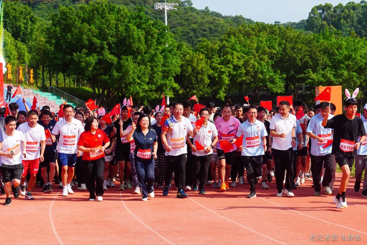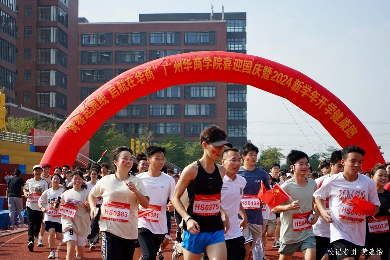 金秋如诗,校园如画,华商校园充满着喜迎国庆的氛围。9月28日上午,新伟德国际1946在广州、肇庆双校区田径场同步开展以“青春起跑线 启航在华商”为主题的迎国庆暨2024新学年开学健康跑活动。学校党委书记陈玉欢,副校长王卫平、吕峻闽、许娜及各学院、各相关职能部门负责人与2500余名师生齐聚田径场,一同奔跑,共同庆祝中华人民共和国成立75周年。