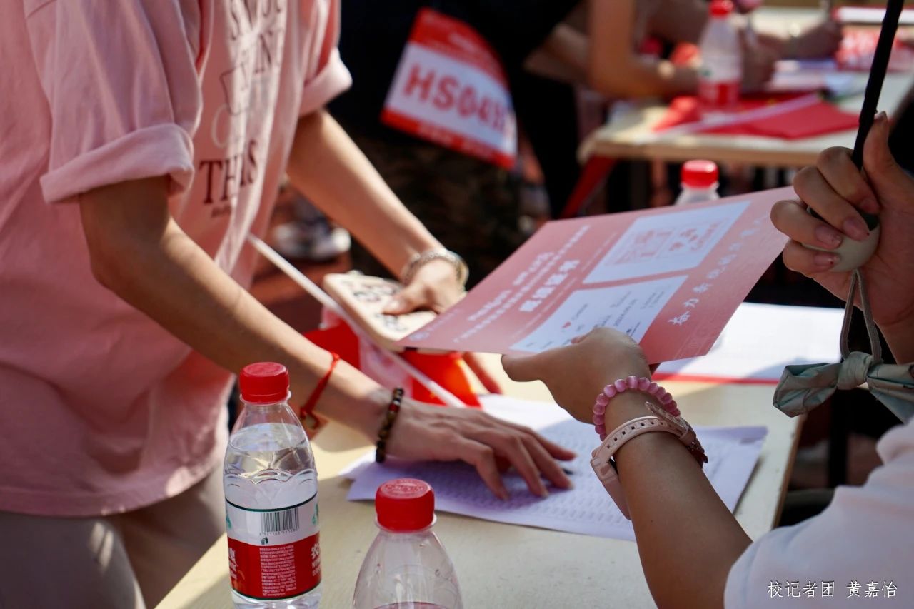本次活动的顺利开展,得益于教师工作人员和学生志愿者前期的充分准备。活动当天早晨6点钟就到达指定集合点,摆好桌椅板凳、搭好帐篷、布置补给点、打卡点、医疗点,分发物资与号码牌……他们是活动有序进行的“无声力量”;指引志愿者提前集合,到达跑步线路指引点,为活动有序进行提供路线指引,成为华商健康跑的“人形路标”;国旗方队志愿者为更好地呈现昂扬的华商青年力量,多次排练巨幅国旗入场仪式;医疗点医生为参与活动的师生安全保驾护航……辛苦了,默默奉献的华商人。
