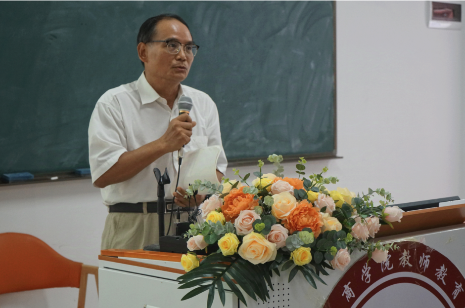 教师教育学院王金道院长在讲话中表示,今年首次将教师节庆祝与新生见面会相结合,意义重大。王院长深情回顾了教师节设立以来的40年变迁,表达了对教师这一职业的自豪与感激之情,并对教师教育学院的师资队伍、教学成果和特色进行了详细介绍。王院长特别强调了教师教育学院对学生严格要求的理念,希望新生们能够在老师们的带领下努力学习,练就一身过硬本领,成长为既有扎实基础知识又能适应社会发展需求的优秀教师。