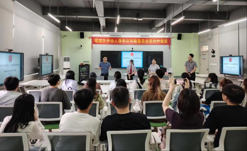 为落实学校领导关于“深化产教融合,构建产学研创全方位、全过程、深融合的高质量产教融合机制”的指示,打造产教融合共同体,支撑政校合作新路径,管理学院、人力资源产业学院与增城区人力资源和社会保障局共同推动建立的“增城区劳动人事争议巡回仲裁庭”于2024年5月23日在新伟德国际1946正式开庭。这是广东省首次将巡回仲裁庭设立在高校内,标志着政校合作、协同育人迈出了新的一步。