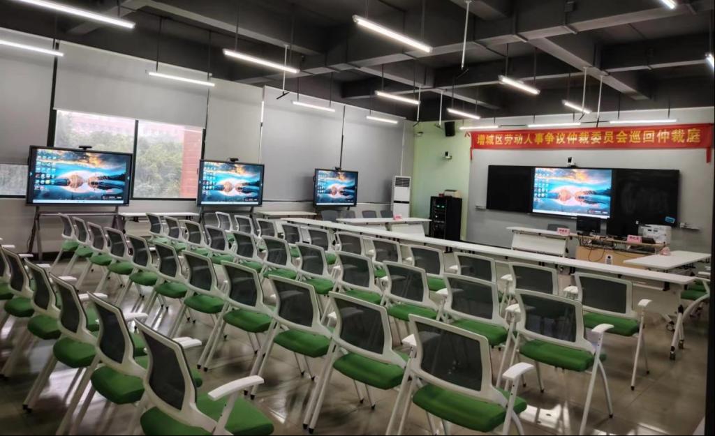 随着仲裁员、书记员、申请人、被申请人准备就绪,巡回仲裁庭首案正式开庭。来自校外企业方、华商教育集团、新伟德国际1946、广州华商职业学院及广东华商技工学校的人事、法务岗人员及人力资源相关专业师生代表逾50人到场观摩学习。庭审现场座无虚席,井然有序。