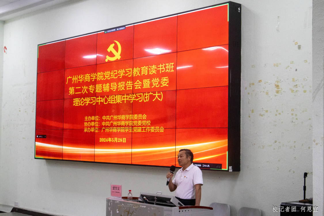 为推动全面从严治党向纵深发展,推进党纪学习教育走深走实,教育引导党员干部自觉学纪、知纪、明纪、守纪,5月28日,我校在广州校区励志楼C208召开党纪学习教育读书班第二次专题辅导会暨党委理论学习中心组集中学习(扩大)会议。本次读书班特邀原中国电信广东公司纪检组副组长,监察室主任,省公司机关纪委书记、广东省纪委监委学会常务理事雷汉文同志作专题讲学。学校党政领导班子、校长助理,各职能部门、各二级学院负责人及师生党员代表参加本次学习。