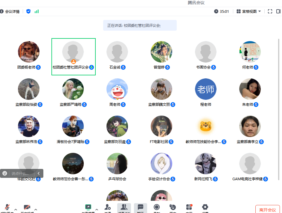 学生社团建设管理评议会是我校落实学生社团改革要求,提升学生社团建设管理水平的重要举措。本次评议会是各社团一学年建设成果的集中汇报,学生社团代表们分享社团管理中的收获与经验,交流探讨社团改革后新的发展思路,以及工作中遇到的实际困难和存在的问题。接下来,学校团委将继续在学校党委的领导下,更加聚焦立德树人这一根本任务,进一步推进我校学生社团规范化管理,打造社团建设的特色文化、品牌文化,促进校园文化繁荣、助力学生成长成才。