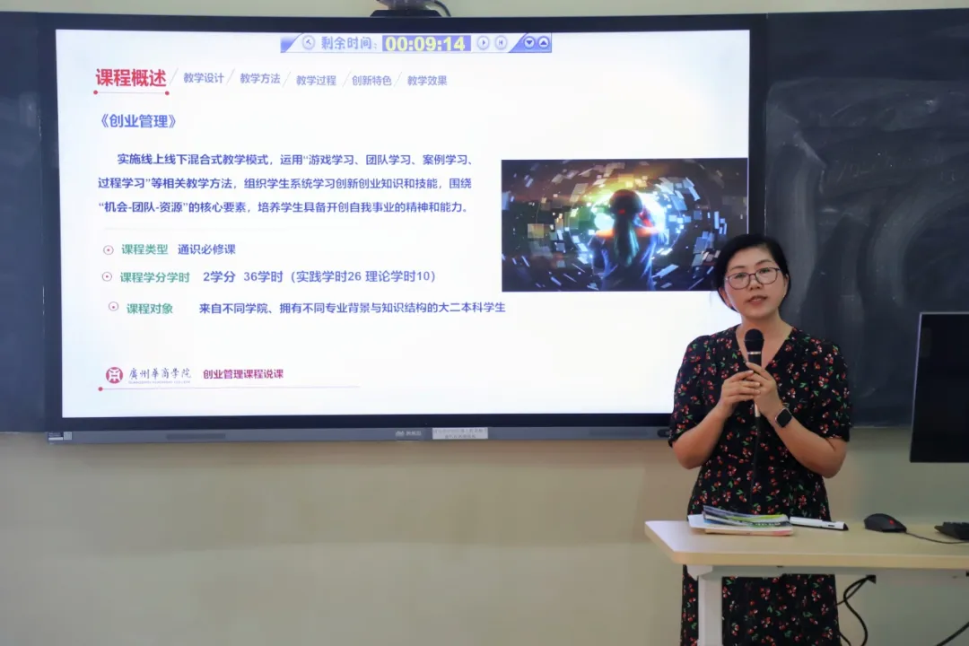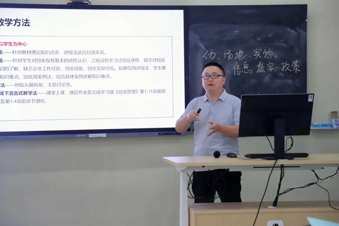 随后,创新创业学院6名教师进行了磨课展示。他们分别选取了《创业管理》课程相应章节作为磨课内容,进行了10分钟课程设计与30分钟教学演示。磨课评审专家赖庆教授和张干英教授根据《新伟德国际1946磨课评价表》中3环12项38条评价内容,逐一给予专业指导,并与磨课教师反复交流,由表及里、由浅入深耐心讲解前沿教学理念、现代教学方法、最新教学模式,希望各位教师潜心钻研、反复打磨,不断提高教书育人能力。