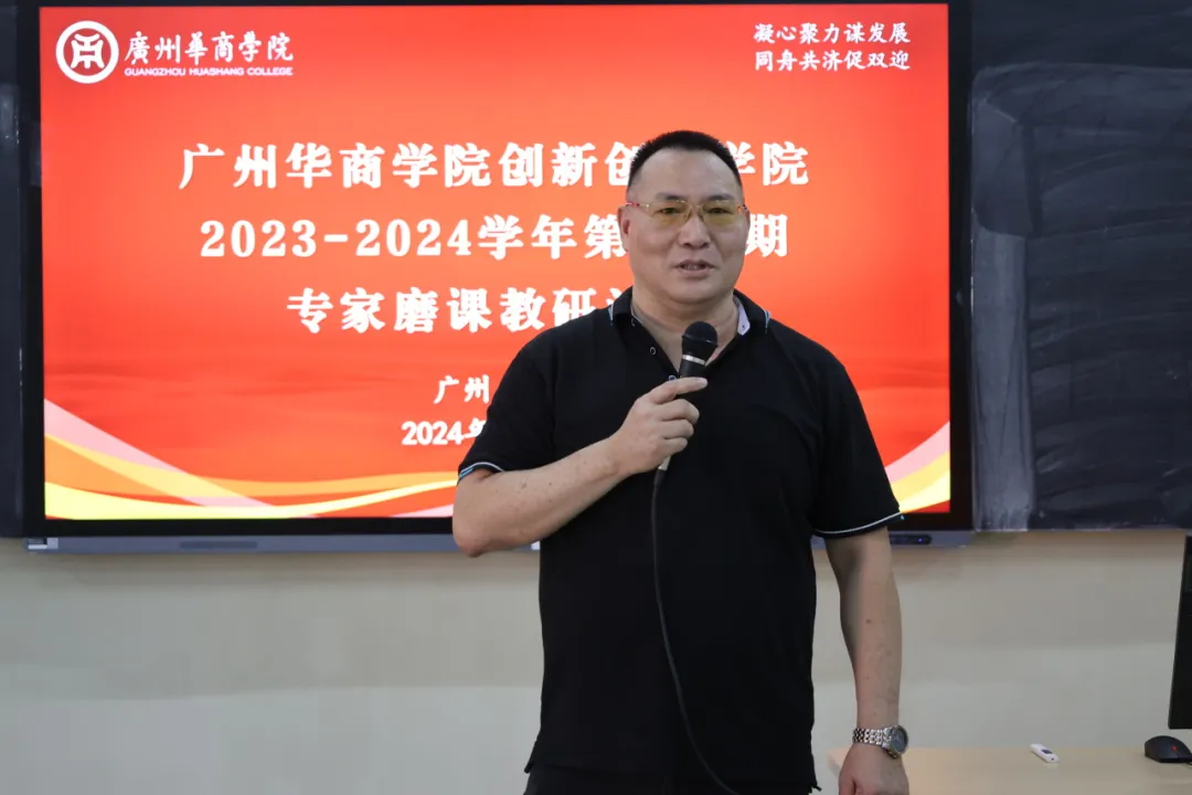 6月20日上午,新伟德国际1946创新创业学院在广州校区励志楼D305智慧教室开展2023-2024学年第二学期专家磨课教研活动。教学督导办于唤洲主任,学生就业创业处曾龙威处长、宋元跃副处长,磨课评审专家赖庆教授、张干英教授,教学督导办及学生就业创业处全体教师参加本次专家磨课教研活动。