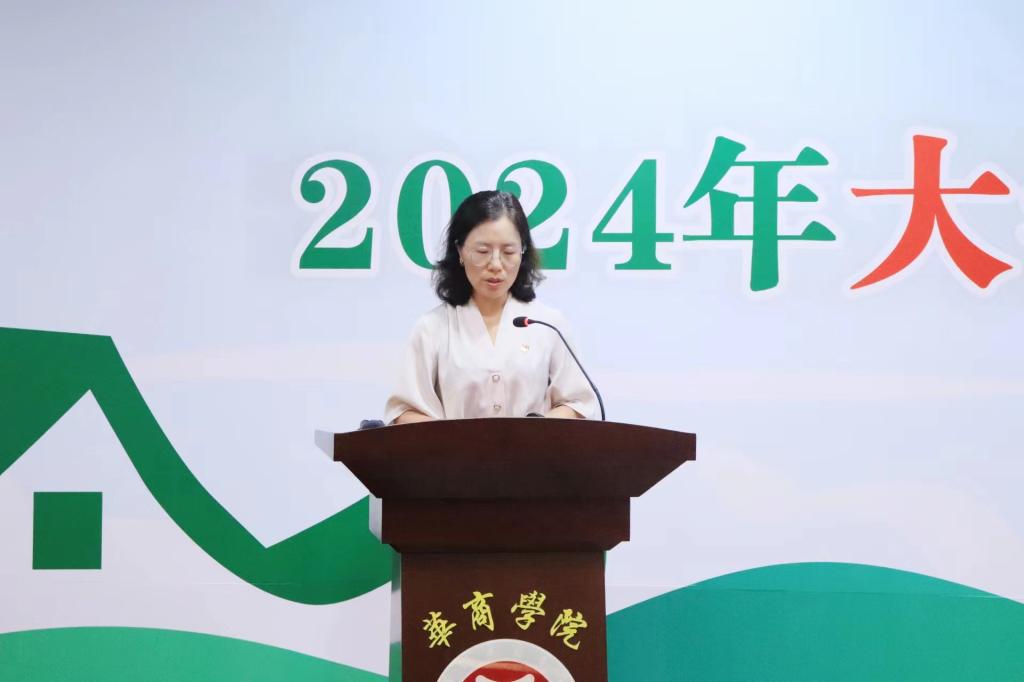 会议伊始,学校党委委员、党委办公室主任、机关党委书记吕书勉同志作新伟德国际19462024年大学生党员暑期社会实践活动工作组织筹备情况报告。她从以下四个方面进行汇报,一是锚定目标任务,组队情况良好;二是实践特色鲜明,专业优势显著;三是实践亮点突出,校地合作深化;四是压实压紧责任,夯实安全保障。她衷心祝愿老师们、同学们,以此次出征仪式为新的起点,一路高歌猛进,气势如虹,旗开得胜,实践取得圆满成功。