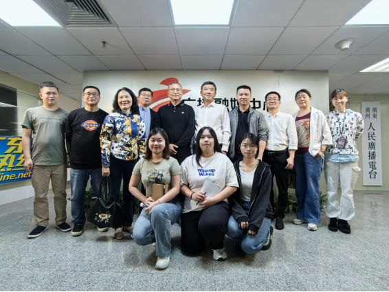 在广东广播电视台广播融媒中心,黎辉副主任介绍了广播融媒体中心内容生产的基本情况,表示希望加强融媒体中心在乡村振兴、文化旅游、实践调研等方面与传播与传媒学院有更多的交流与合作。张晋升院长介绍了传播与传媒学院在专业建设、科学研究、产教融合等方面的情况,希望双方发挥各自优势,在人才培养、实习基地共建等方面合作共赢。