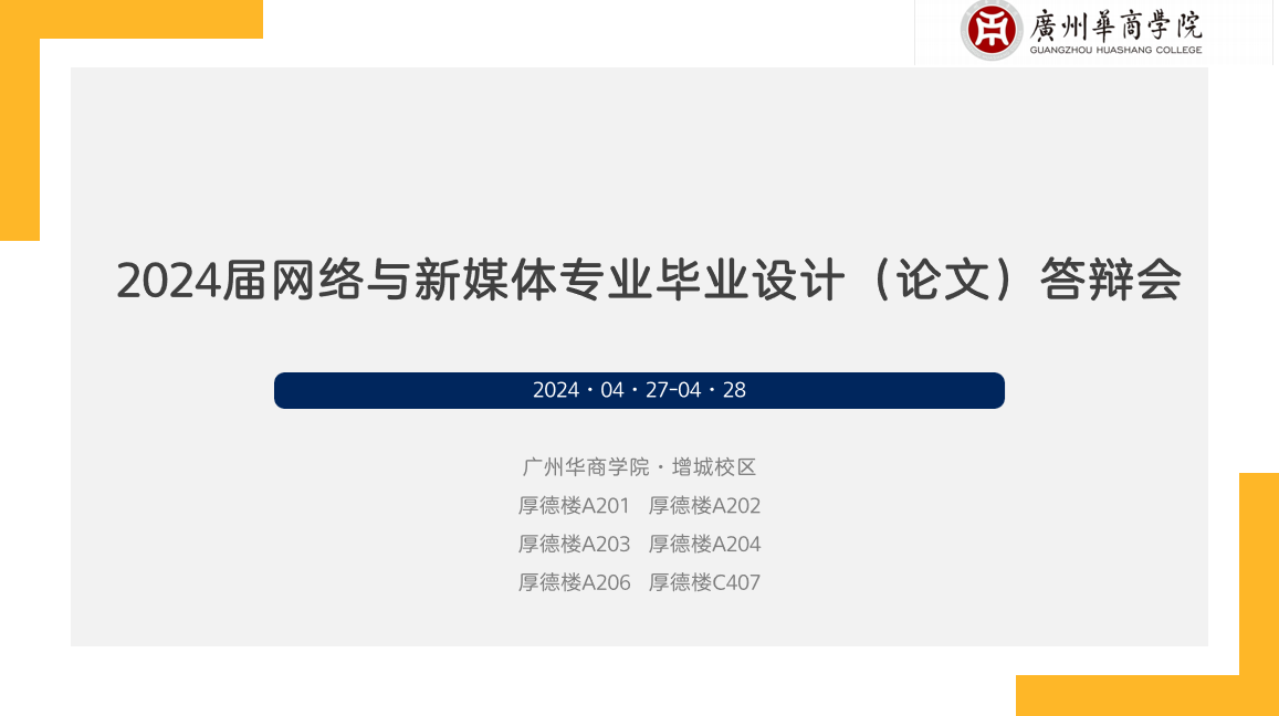 为落实新伟德国际1946本科评估工作要求,夯实毕业设计(论文)工作全流程,提升人才培养质量,2024年4月27日至28日,传播与传媒学院网络与新媒体系本科毕业设计(论文)答辩会在厚德楼A201-206举行,网络与新媒体系全体教师和2024届网络与新媒体专业毕业生参加答辩会。