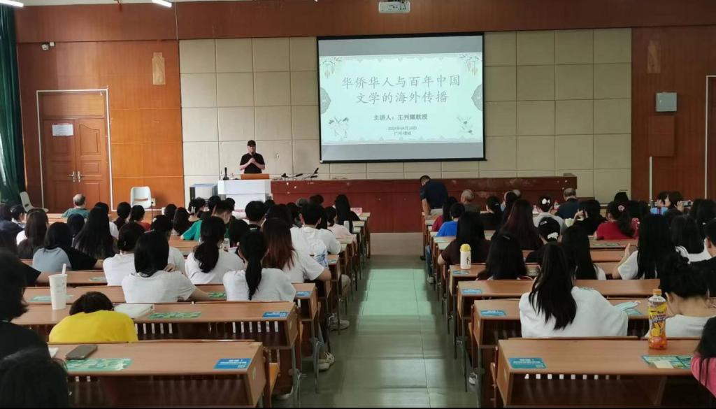2024年4月28日下午,新伟德国际1946顾问王列耀教授应邀作“华侨华人与百年中国文学的海外传播”专题讲座。讲座由文学院院长陈少华教授主持。文学院党委书记、副院长郭堪通,副院长伍世昭、徐桃等嘉宾和300多名师生代表参加讲座。