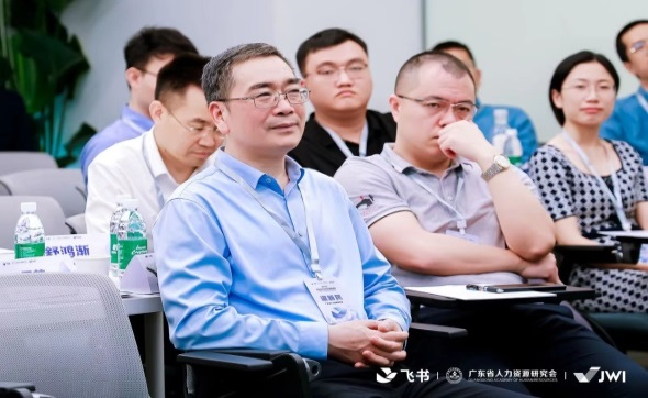 4月24日,谌新民教授带队前往字节跳动(飞书)深圳总部参访,研究院办公室主任何靖怡及50多家企业代表参与交流。谌新民教授、飞书生态渠道副总裁王思前等与50多家企业代表共同探讨了字节跳动快速发展背后先进管理理念、AI对经济发展、就业带来的影响,商讨了进一步深入合作的领域和机制。