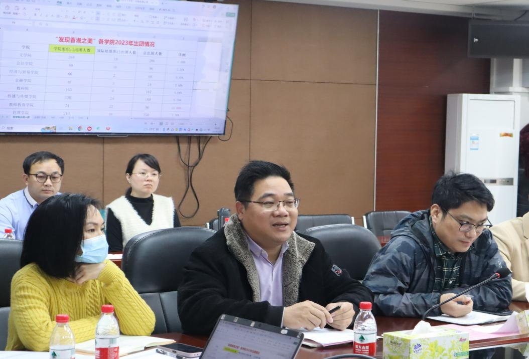 2024年3月5日,我校在华商学院广州校区行政楼513会议室顺利召开了“发现香港之美”研学专题研讨会。党委书记陈玉欢、副校长吕峻闽、校长助理、相关职能部门负责人、各二级学院学工书记参加了本次研学专题研讨会。会议由国际交流与合作处暨港澳台办主任王文忠主持。