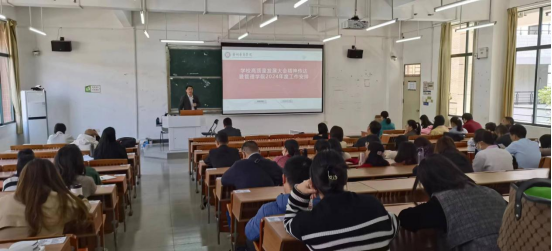 学院党委副书记陈纯华首先对开展2024年文明安全纪律教育月活动进行全体动员和部署,强调教师的课堂主体责任,要求辅导员尽快落实主题班会,开展相关活动,做到全员参与,人人知晓。其次提醒两个重要时间节点的相关工作要求。最后,针对在校生工作和毕业生工作重点提出部署和要求,希望动员全院力量,为学生工作保驾护航。