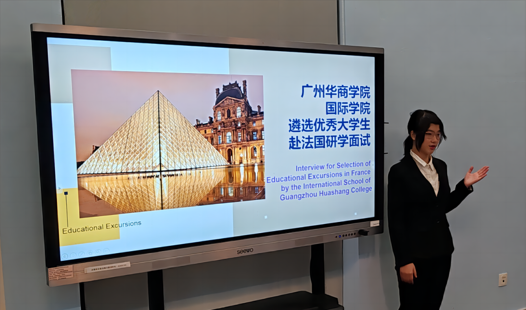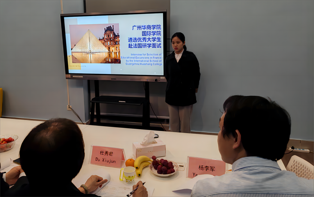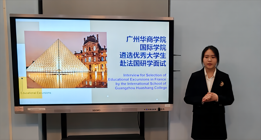 每位学生都用英文进行了自我介绍,展示了自己的成长经历、学习情况、语言能力、个人特长、职业规划以及对参加此次赴法研学团的强烈兴趣和渴望。随后,评委们对每位学生用英语进行了提问,这些问题涉及个人的学习能力、兴趣爱好、对法国文化和教育体系的了解、团队合作经验、应对挑战的能力等。