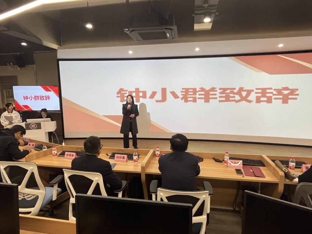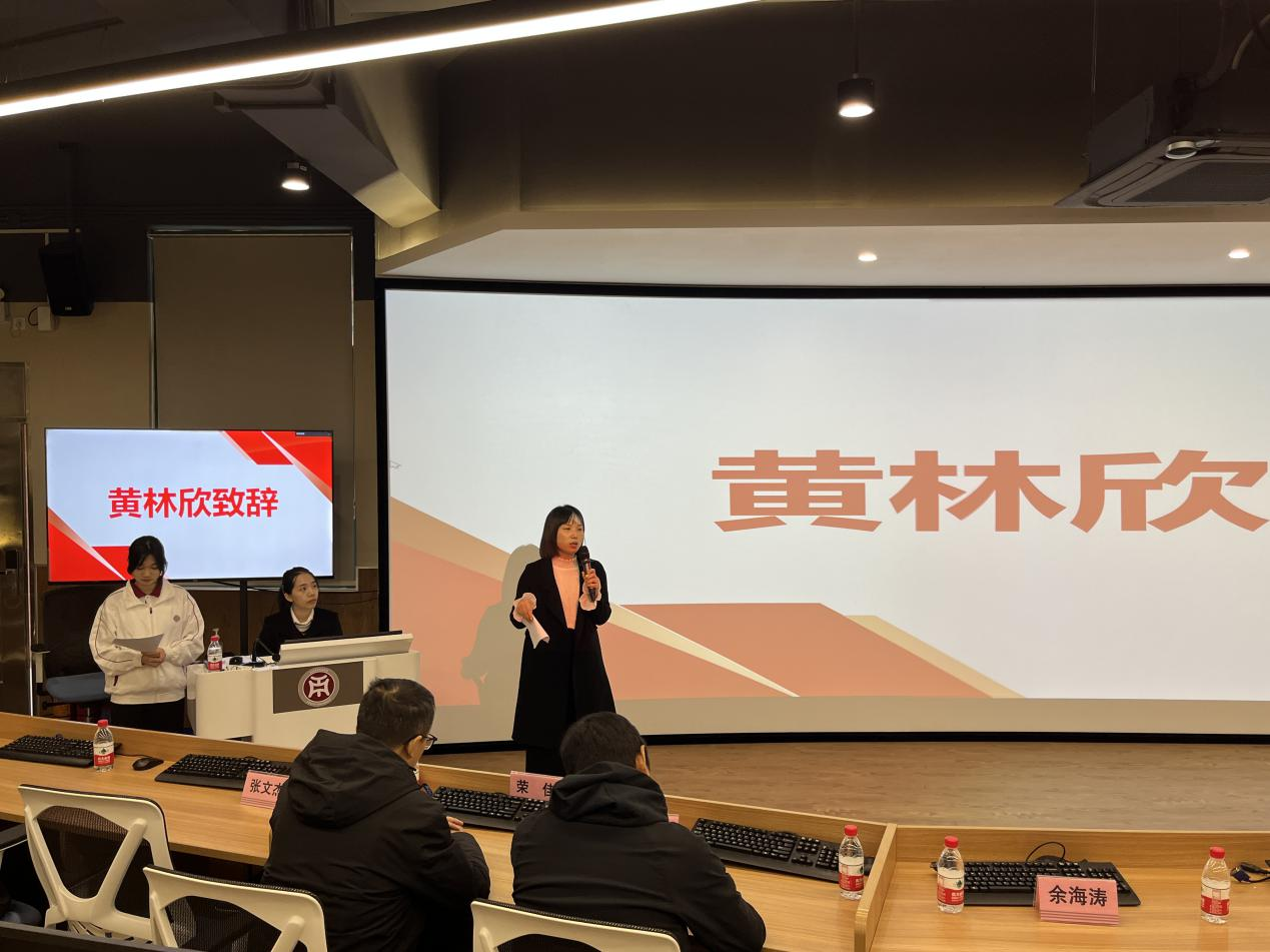 广发证券区域总监黄林欣表示,很荣幸能与我校金融学院、新塘工行合作举办本次的模拟大赛,对进入前10名的学生表示祝贺,随即详细介绍广发证券经营情况及与战略合作伙伴“轻实习”金融实践项目。