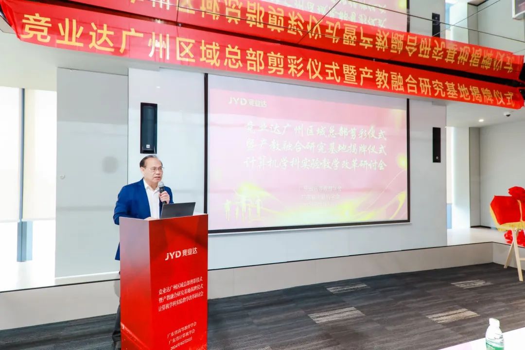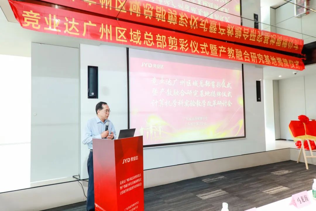 广东金融学院原党委副书记、广州新华学院副校长马龙海、广东省高等教学学会常务副会长、研究员汤贞敏、北京竞亚达数码科技股份有限公司副总裁李文波等分别致辞。祝贺广东省计算机学科实验教学改革研讨会的顺利召开,祝贺北京竞亚达数码科技股份有限公司产教融合研究基地顺利揭牌,充分表达了此次研讨会的重要意义。