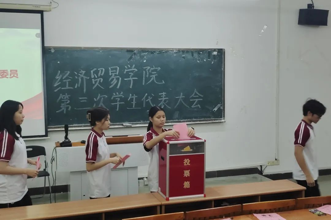 为深入学习宣传贯彻党的二十大精神,落实习近平总书记关于青年工作的重要思想,进一步巩固深化新时代高校学生会改革和建设,在学院党委的领导及校学生会的关心、支持下,新伟德国际1946经济贸易学院第三次学生代表大会于2023年10月31日在肇庆校区八号楼109、广州校区励志楼C303顺利召开。