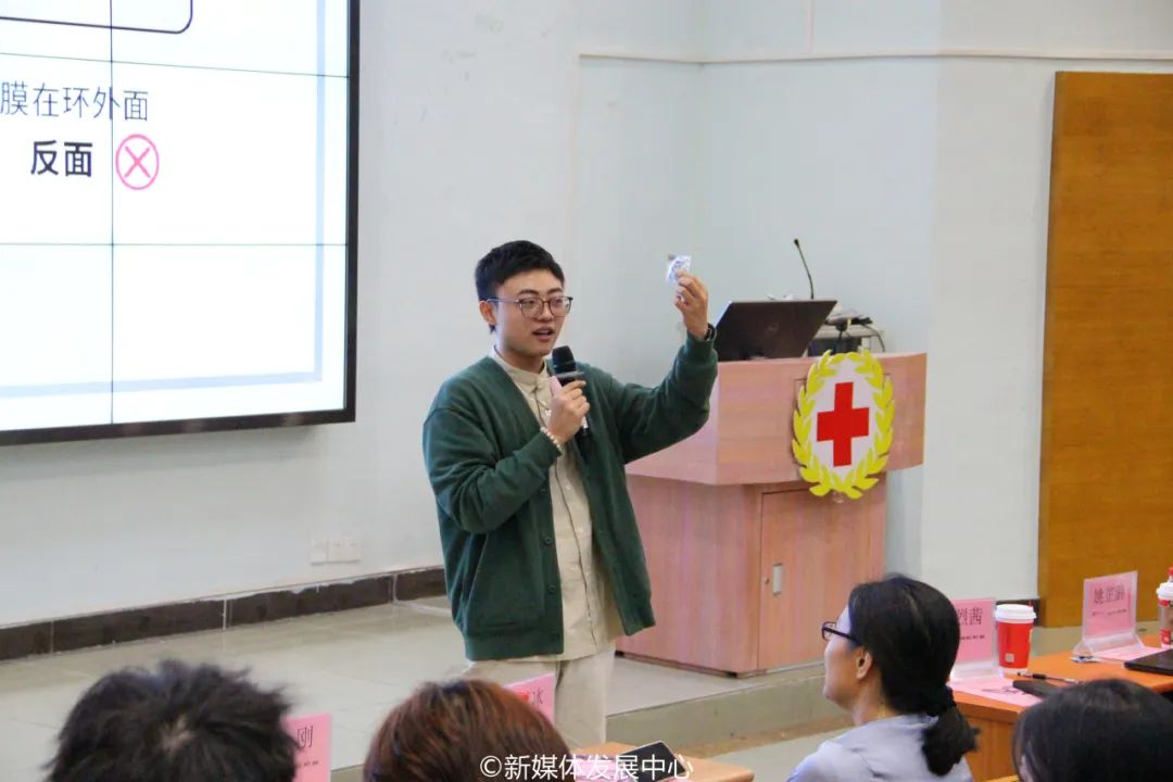 最后,广东省青少年性健康联盟陈家杰讲师邀请同学们现场互动,通过道具进行演示,让同学们在轻松愉快的氛围中认识到正确使用合格的性用品可以有效地预防感染艾滋病。
