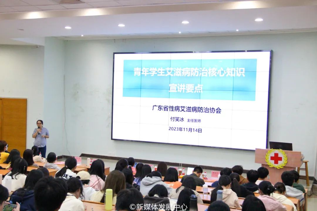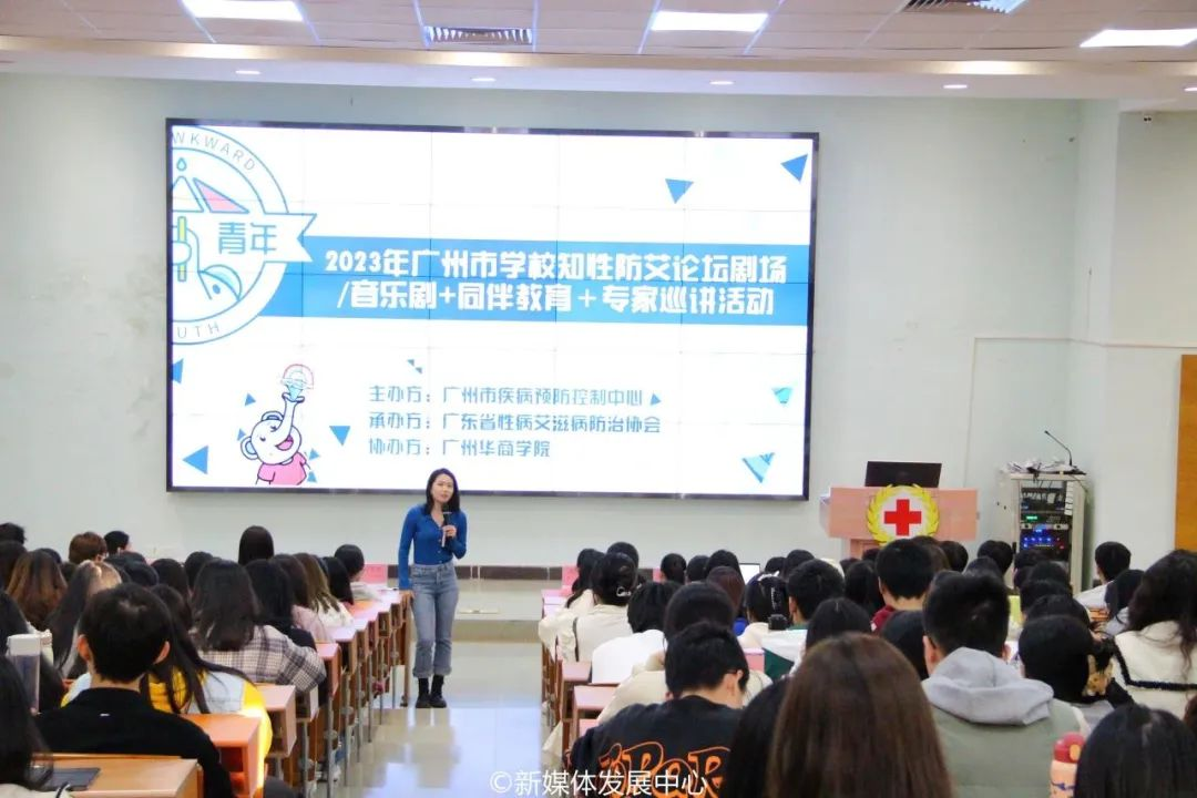 为进一步加强艾滋病防控知识宣传,提高学生健康意识,扎实做好预防艾滋病教育工作,充分发挥我校红十字标准校的积极作用,我校团委以第36个“世界艾滋病日”为契机,积极开展一系列宣传教育活动,引导华商青年关注性健康教育、艾滋病传播与预防等问题,增强同学们的性健康意识。11月14日16:00,在广东省疾病预防控制中心艾防所、广东省性病艾滋病防治协会、广州市增城区疾病预防控制中心指导下,我校团委在广州校区励志楼C408举办“凝聚社会力量 合力共抗艾滋”预防艾滋病健康教育系列活动。本次活动由校团委陈刚书记主持,近350多名师生共同参与。