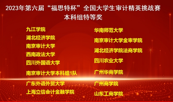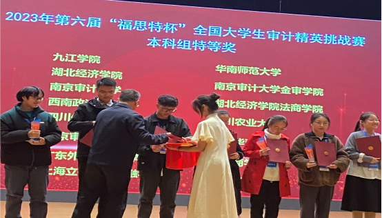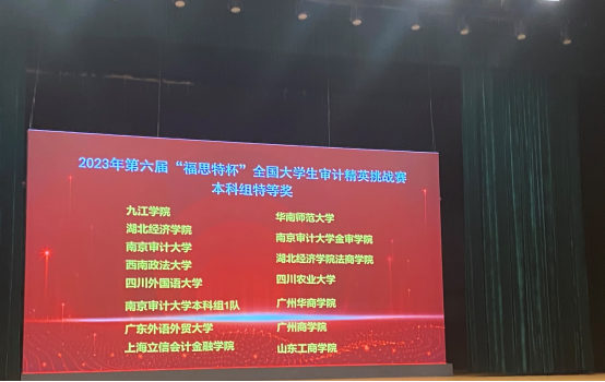 11月18日,第六届“福思特杯”全国大学生审计精英挑战赛总决赛在南京审计大学盛大落幕,我校代表队从2314支队伍中冲进全国总决赛,又在决赛中斩获“特等奖”荣誉,让新伟德国际1946的校徽与全国知名院校同台登上了决赛幕墙,为我校争光。
