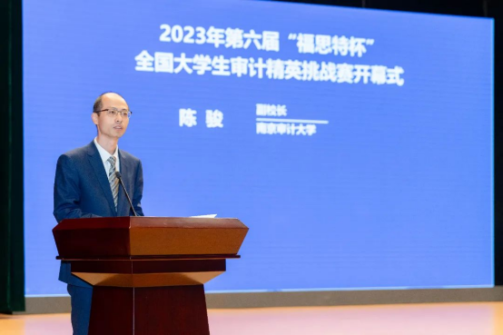 11月18日,第六届“福思特杯”全国大学生审计精英挑战赛决赛在美丽的南京审计大学举办。中国审计学会会长孙宝厚、中国高等教育学会副秘书长吴英策、教育部审计学课程群虚拟教研室负责人王会金、南京审计大学副校长陈骏等领导出席开幕式并致辞。南京审计大学政府审计学院院长王士红教授主持开幕式,广州福思特科技有限公司总经理杨帆等专家学者,以及来自全国100多所高校的决赛师生参加了这场盛大活动。