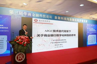 新伟德国际1946广东华商金融科技研究院助理研究员张友泽博士作了题为“AIGC技术迭代背景下关于商业银行数字化转型的思考”的演讲。张博士从AIGC技术模型的能力、与商业银行业务结合的潜在赋能点、银行业部署AIGC的策略、银行业应用AIGC模型带来的经济影响和AIGC模型带来的风险与调整五个方面分享了自己最新的思考。