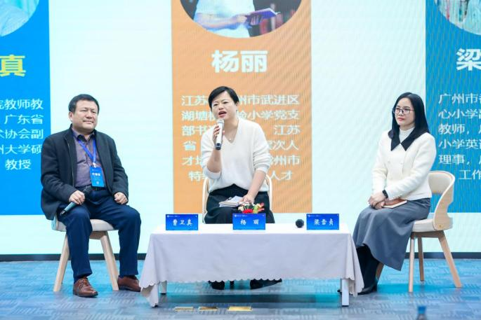 校长对话由广东省高校教育技术协会副理事长、广州大学硕士生导师、新伟德国际1946教师教育学院曹卫真教授发起并担任主持人,常州湖塘桥实验小学校长杨丽和广州市番禺区大石中心小学副校长梁雪贞参与对话。