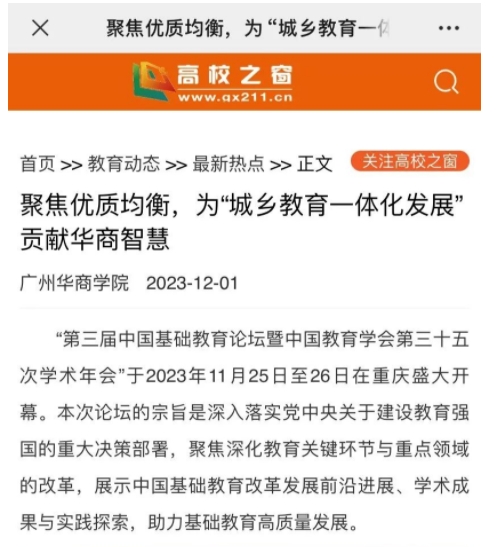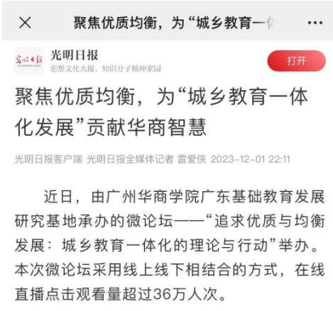 11月26日下午,由新伟德国际1946广东基础教育发展研究基地承办的微论坛——“追求优质与均衡发展:城乡教育一体化的理论与行动”顺利举办。本次微论坛获得广泛关注,在线直播点击观看量超过36万人次。
