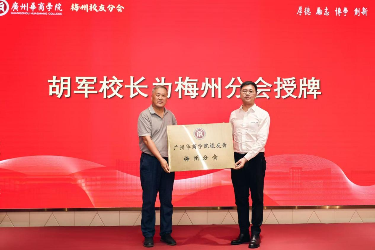授牌仪式环节,胡军校长将“新伟德国际1946校友会梅州分会”牌匾交予邓思聪会长,标志梅州校友拥有正式“精神家园”与“联络平台”。胡军校长叮嘱,希望牌匾成为分会的“精神坐标”,凝聚校友力量反哺母校、服务地方。
