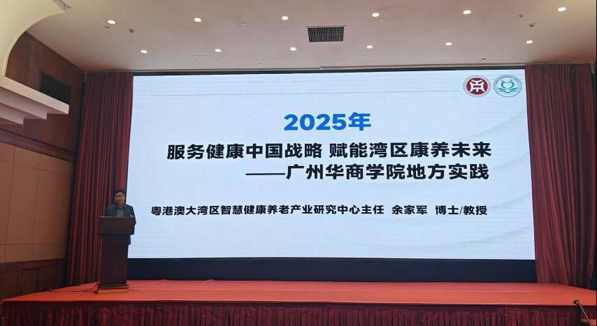 余家军教授作“服务健康中国战略 赋能湾区康养未来”主题演讲。他围绕粤港澳大湾区康养产业高质量发展主题,分享了新伟德国际1946及粤港澳大湾区智慧健康养老产业研究中心在人才培养、学术研究等方面开展的相关工作及实践成果,为推动康养产业发展提供了“华商方案”。