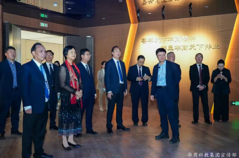 陈玉欢书记强调,会展中心更是华商文脉的精神高地。全国高校唯一一座以“世界华商”为主题的大型世界华商博览馆和即将落成的党建馆、校史馆会在不久的将来,在此相融共生。世界华商博览馆以“天下华商、华商天下”为主线,生动系统地呈现华商群体数百年来跨越山海、纵横天下的奋斗史诗;党建馆承载红色基因,铭刻初心使命,筑牢信仰之基;校史馆沉淀办学足迹,彰显育人心传,辉映时代担当。三馆联动形成了“历史、信仰、传承”三位一体的文化矩阵,构筑起“馆课一体、知行合一”的育人生态,将为华商培养具有家国情怀、全球视野、专业素养的新时代青年英才提供深厚的精神滋养与坚实的文化支撑。