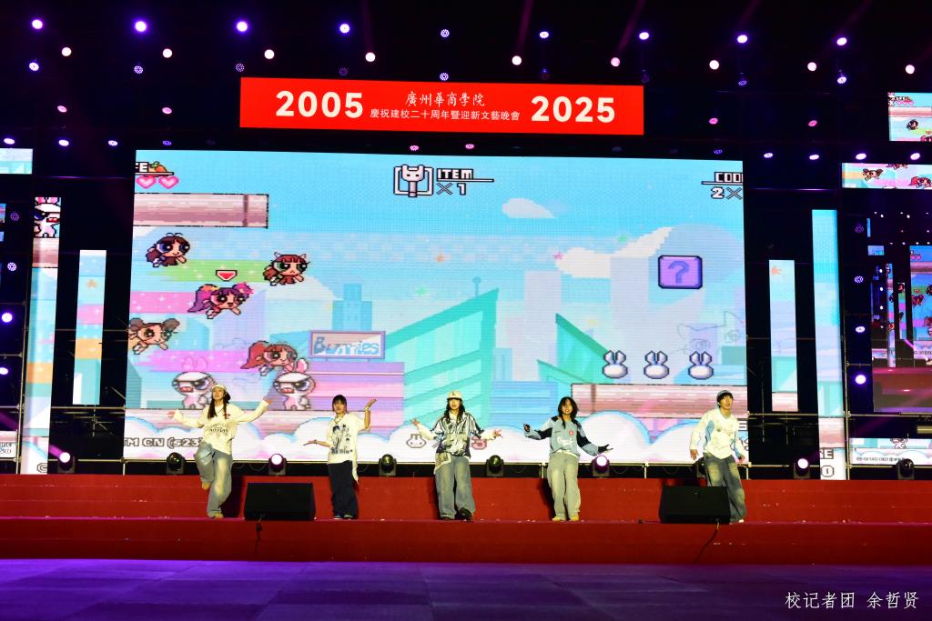 伴随着激昂的旋律,晚会正式拉开帷幕。本次晚会以“华商·正茂”为核心,设置序章《华商人:华商印迹》等三大主体篇章,通过歌舞、朗诵、跆拳道等多元形式,勾勒出华商二十载办学育人的璀璨画卷,展现出新时代华商人的精神风貌。