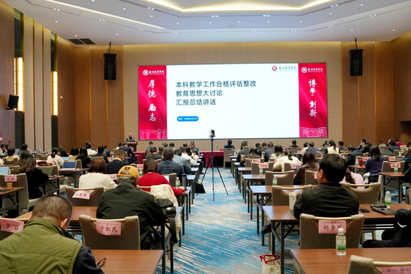 为切实解决诊断评估中发现的问题,2025年12月8日起,学校在全校范围内开展为期一个半月的本科教学工作合格评估整改教育思想大讨论,并于2026年1月26日、27日召开教育思想大讨论总结汇报会。学校校长胡军,副校长范忠宝、刘少波、焦方太、吕峻闽,全体中层干部,人事处、教务处、学生处、产教融合办公室、教评中心、教学督导办公室、实验中心科级干部齐聚一堂,全体教职员工线上参与,共同分享研讨此次教育思想大讨论的成果。
