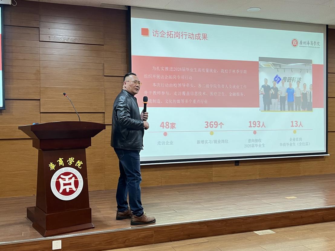余家军副校长作总结讲话。他指出,2026届全国高校毕业生规模再创新高,就业市场呈现高供给、分化发展的特征,学校就业工作面临严峻挑战,更迎来倒逼人才培养和就业服务提质升级的契机。他对全校就业工作提出要求:一要提高政治站位,压实全员主体责任;二要聚焦市场需求,推动招培就一体化;三要坚持精准施策,落实一学生一实策。希望全校教职工树立大教育观、大就业观,协同发力,以更实举措推动2026届毕业生实现更高质量、更充分就业,让学子们带着“华商印记”自信走向社会、开启人生新征程。
