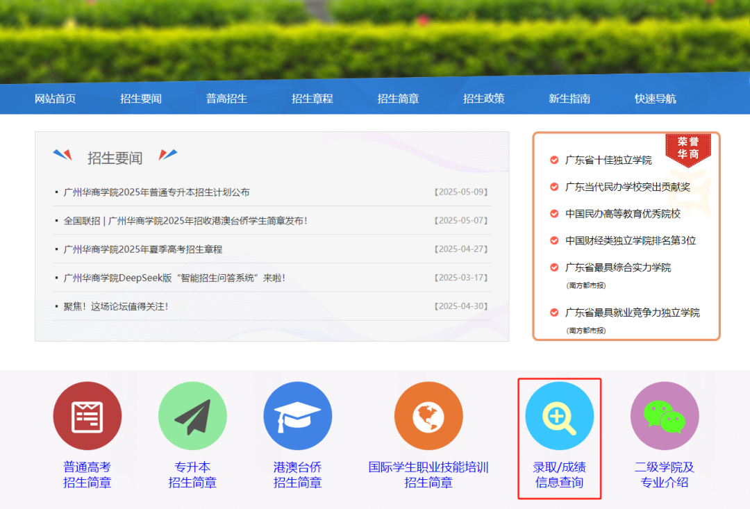查询网站:新伟德国际1946招生信息网(http://zs.gdhsc.edu.cn/)