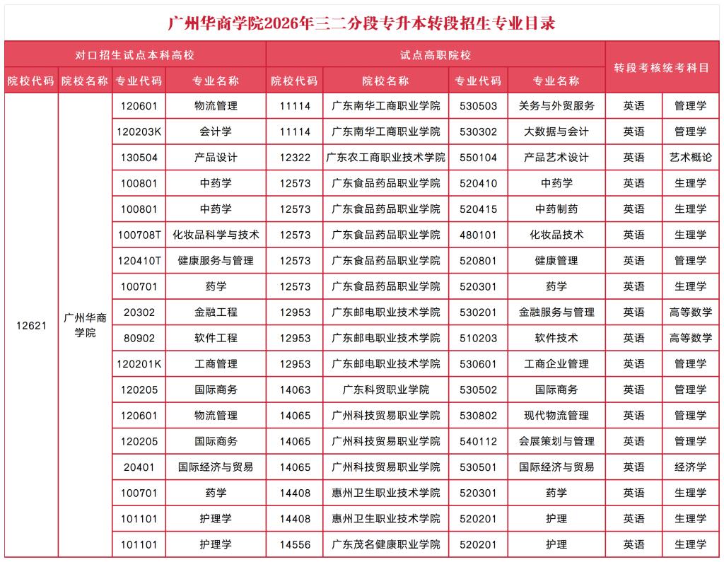 注:以上招生专业、招生计划数、收费标准等以广东省教育考试院公布为准。