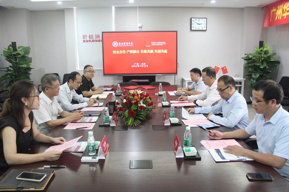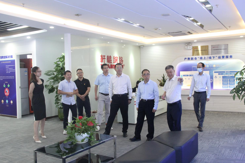 随后,郭校长一行在陈统董事长的陪同下,参观了轩辕网络以及位于光宝广州科技园区内的科学城产业学院,并与公司领导层进行了深入交流。广东轩辕网络科技股份有限公司董事长陈统、副总裁李楚威、副总裁伍世梨、销售总监廖灵锋参与座谈交流。