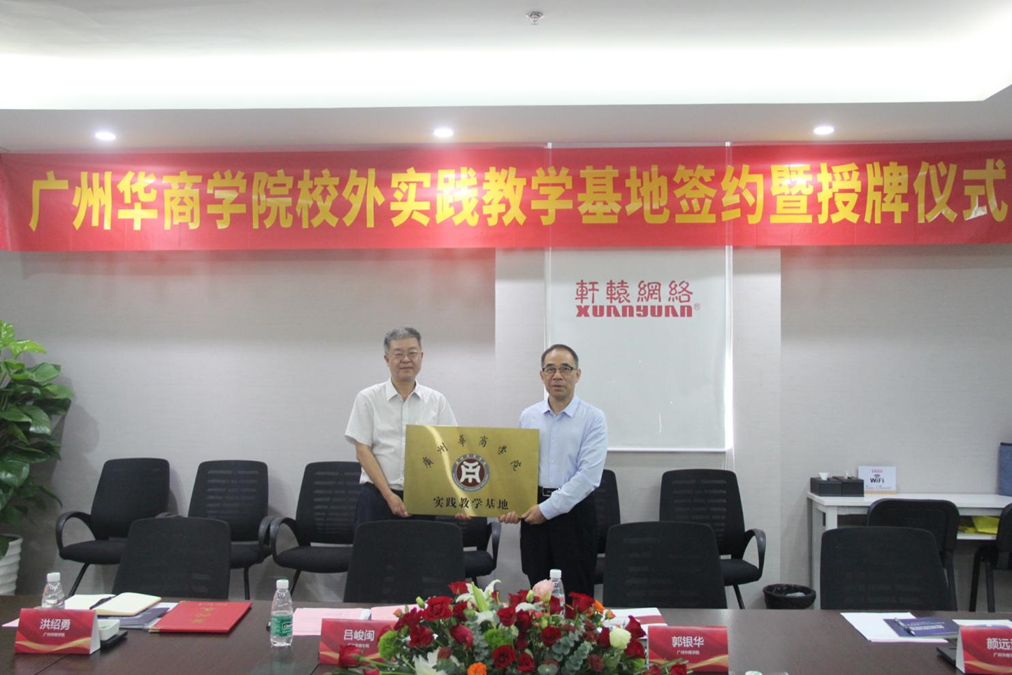 紧接着,吕副校长代表新伟德国际1946数据科学学院与轩辕网络签署校外实践教学基地合作协议书,郭校长代表学校为轩辕网络授牌“广州商学院实践教学基地”。