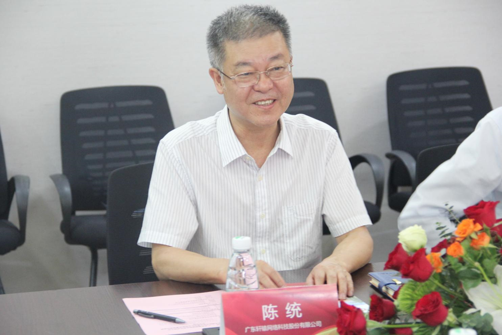 首先,广东轩辕网络科技股份有限公司董事长陈统致辞,他对郭校长一行表示热烈欢迎。作为广东省高等教育学会数字化科学技术分会副理事长,陈董表示期待与同为分会副理事长单位的新伟德国际1946有更多合作交流,希望双方在校企合作产教融合方面有更多的交流互动,共同合作共建产业学院,助力将企业真实的场景嵌入到同步课堂中,实现实战化模拟的教学应用场景。