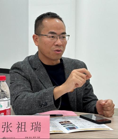 四会玉器商会秘书长张祖瑞向大家介绍了商会的八个委员会和五大部门,阐述了珠宝产业丰富的产业链和学生未来宽广的就业前景。张秘书长还提出了商会与学院共建合作一些具体项目的设想,得到了珠宝学院领导的积极回应。