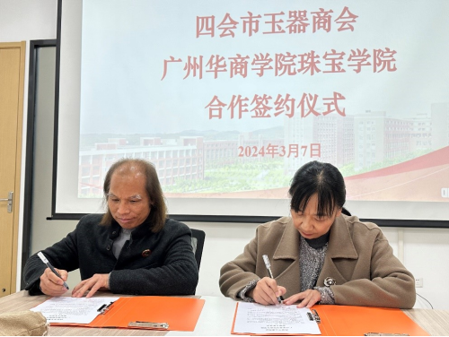 珠宝学院和四会市玉器商会于3月7日在华商学院肇庆校区正式签署战略合作协议。