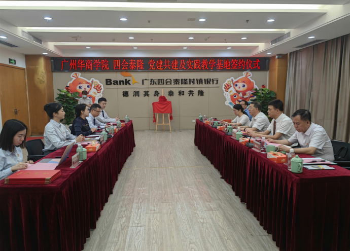为深入贯彻落实党中央、国务院关于“稳就业”“促就业”决策部署,充分发挥校企党建合力,推进党建与业务深度融合,赋能毕业生高质量就业,5月9日下午,新伟德国际1946副校长吕峻闽、肇庆校区党委书记苏宁、肇庆校区党委副书记覃少冰、会计学院院长姚凤民、会计学院副院长刘善球、会计学院学工办副主任杨烨瀚一行赴广东四会泰隆村镇银行开展访企拓岗专项活动,并举行党建共建、实践教学基地签约仪式。