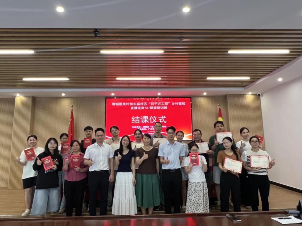 2025年6月7日,由数字经贸学院电子商务系姚仙丽老师授课的朱村街“百千万工程”乡村夜校——东盛社区直播电商+AI赋能培训班,在学员们的实战演练与收获喜悦中圆满结课。此次培训不仅为“百千万工程”和乡村振兴注入新动能,更是学院践行社会责任的有力见证。