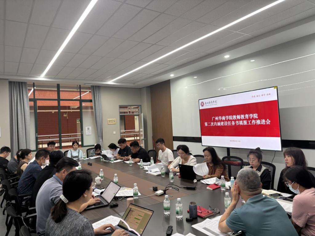 为进一步推动学院内涵建设任务落实,强化评估材料填报质量,教师教育学院于2025年5月9日上午在创新楼201会议室召开第二次内涵建设任务书填报工作推进会。会议由院长助理郑皓元主持,学院领导班子成员及各条目负责人参会。会议围绕任务书填报进展、常见问题整改及教师意见反馈展开交流,旨在优化填报机制、完善执行路径,全面提升任务落实效能。