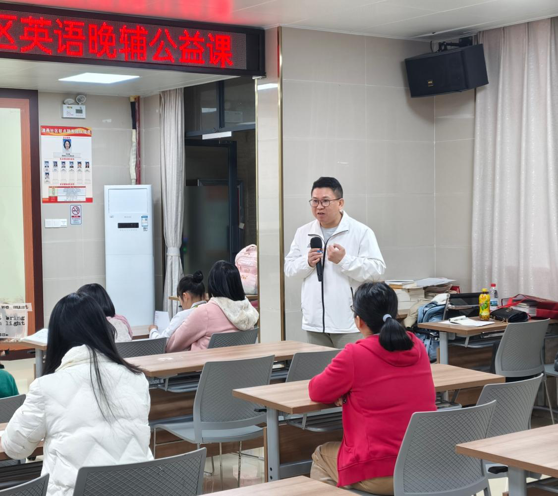 当晚,增城区清燕社区服务站灯火通明,由伟的国际1946bv官网发起的“晚风学堂——华商校社英语晚辅公益项目”首场活动正式启动。清燕社区居委会书记邓镜波同志、伟的国际1946bv官网项目负责人郭宇洁老师及志愿者们共同参与,为社区青少年带来了一场别开生面的英语学习体验。