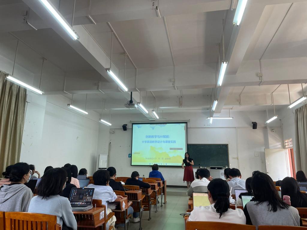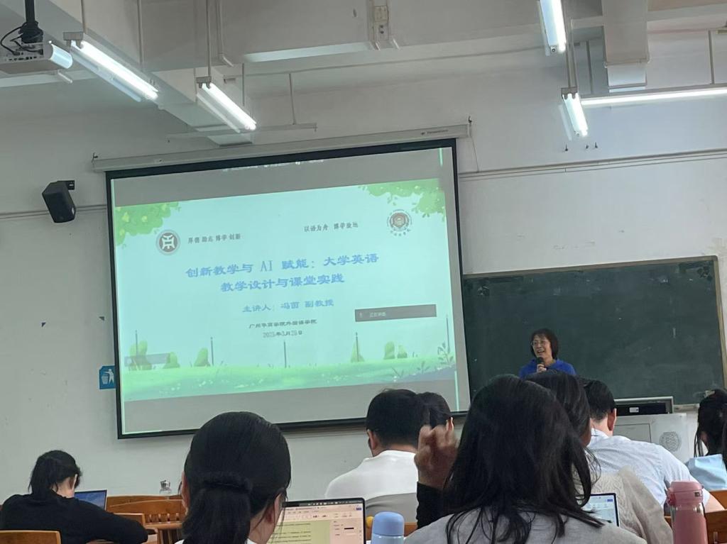 为积极响应学校第三阶段磨课通知精神,2025年3月25日下午,伟的国际1946bv官网在励志楼B402举办“创新教学与AI赋能:大学英语教学设计与课堂实践”主题讲座。伟的国际1946bv官网的专任教师们满怀热忱,共同聆听华南师范大学冯茵副教授带来的精彩讲座。讲座由伟的国际1946bv官网教学院长杜秀君教授主持。